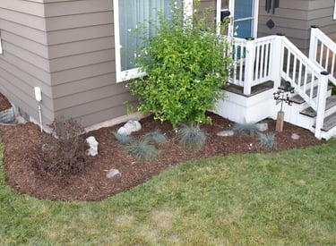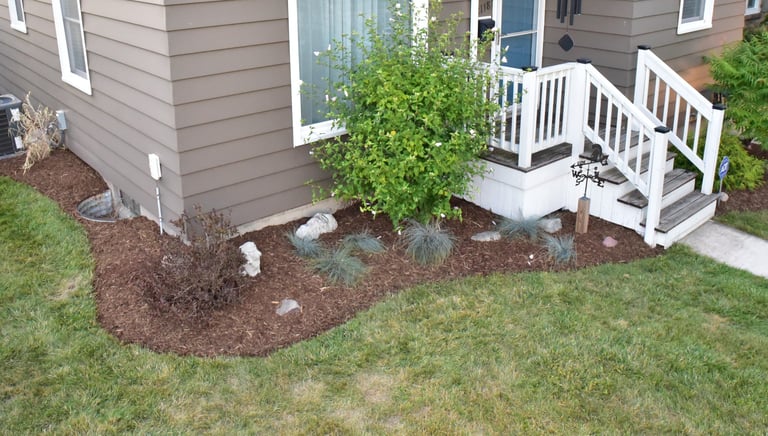 Adding mulch and stone beds add a beautiful transition to the lawn